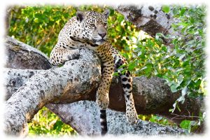 Wir waren am ersten Tag auf dem Fluss noch keine halbe Stunde unterwegs, wo uns ein Jaguar am Ufer signalisiert wurde. Der schlenderte dort entlang auf der Suche nach einem sich bietenden Frühstück. So ging es, zu unserer Überraschung, das an dem Tag weiter. Natürlich glänzten meine Augen und die Kamera hatte gut zu tun. Am ersten Tag sahen wir gleich 5 dieser Raubkatzen. Der Jaguar gehört zu der Gattung Panther und ist dem Leoparden sehr ähnlichen. Insgesamt an diesen 5 Tagen waren es sagehafte 27 dieser wunderschönen Tiere, die wir manchmal nur kurz sahen, bevor sie wieder im Dickicht verschwanden. Andere lagen in Ufernähe herum, räkelten sich, einer wartete auf einem Baum liegend darauf, sich auf den unter ihm schwimmenden Kaiman stürzen zu können. Leider tauchte diese rechtzeitig ab, bevor die Katze zum Sprung ansetzen konnte. Und sie sind gute Schwimmer, ein paar hundert Meter in Ufernähe im Fluss gegen die Strömung zu schwimmen, bedarf schon ganz ordentlich Kraft. Oh Mann, was waren wir froh. Mit so vielen Jaguaren hätten wir echt nicht gerechnet. Dennoch will ich nicht vergessen, auch die spielenden und jagenden Riesenotterfamilien und den quer durch den Fluss schwimmenden Tapir zu nennen.